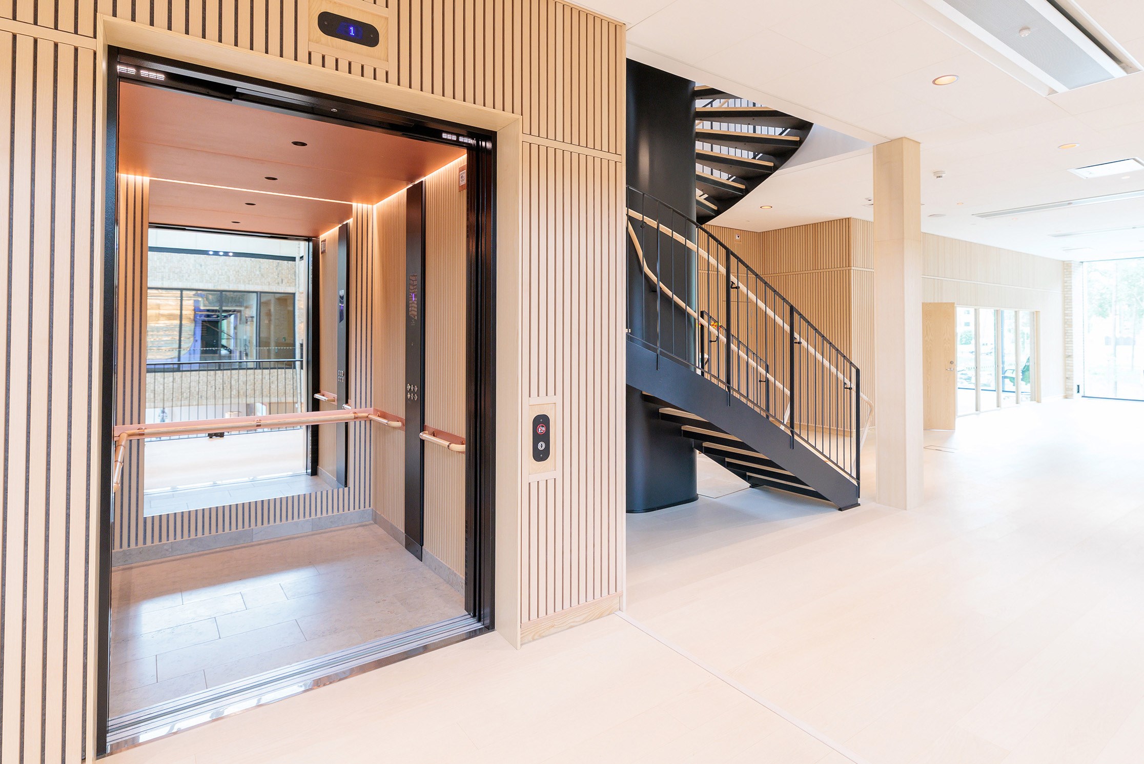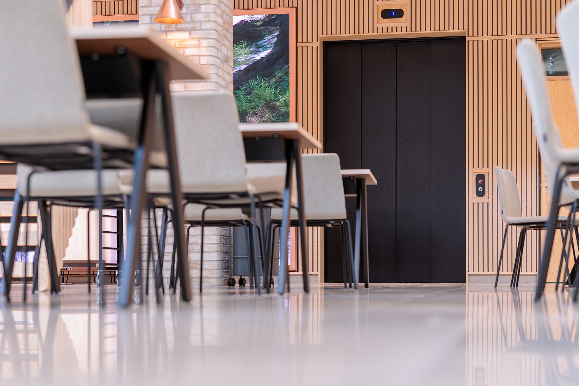 Som en del av byggnadens funktionalitet behövdes en hiss som både passade in i arkitekturen och kunde hantera Nibes behov.